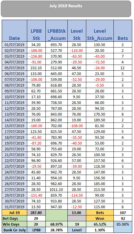 And keep your betting in order and easy to follow, especially if you are going to bet only occassionally, you will need to keep track of your betting activity, and if using the LP88 staking you will need to know if you are in a recovery series.