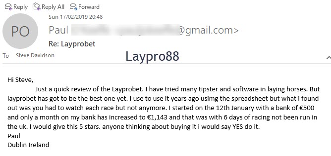 3. If you embrace the computer age, and want more free time, and still reap the reward of the LayPro88 selection and staking, then the manual and Auto betting software are for you.